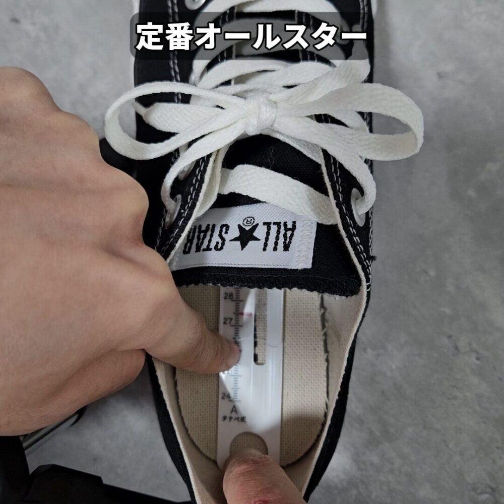 定番オールスターの内寸は、縦幅27.5cm・横幅9.4cm。