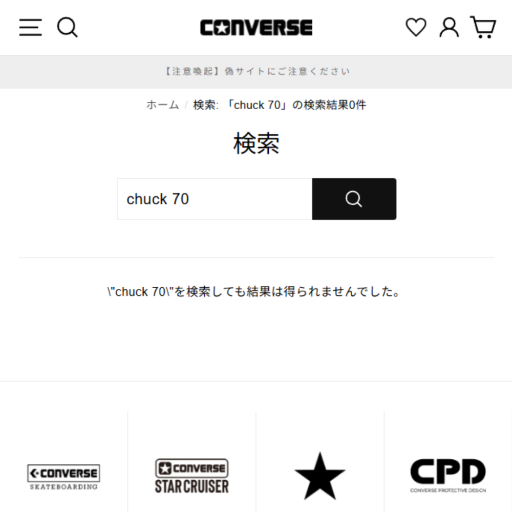 コンバース以外でも、国内の店舗や通販サイトでCT70(chuck 70)は基本的には販売されていません。