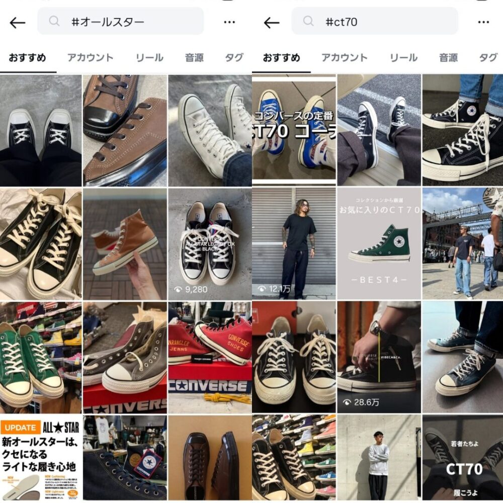 希少性の影響もあってか、TikTokやYouTubeで「オールスター」「CT70」を検索して再生回数を見ても、Instagramで「#オールスター」(約20万件)「#ct70」(約30万件)の投稿数を見ても、CT70の方が明らかに多い傾向があります。