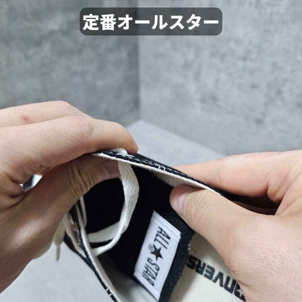 - かかとのロゴ:定番オールスターには”ALLSTAR”、CT70は”三ツ星”