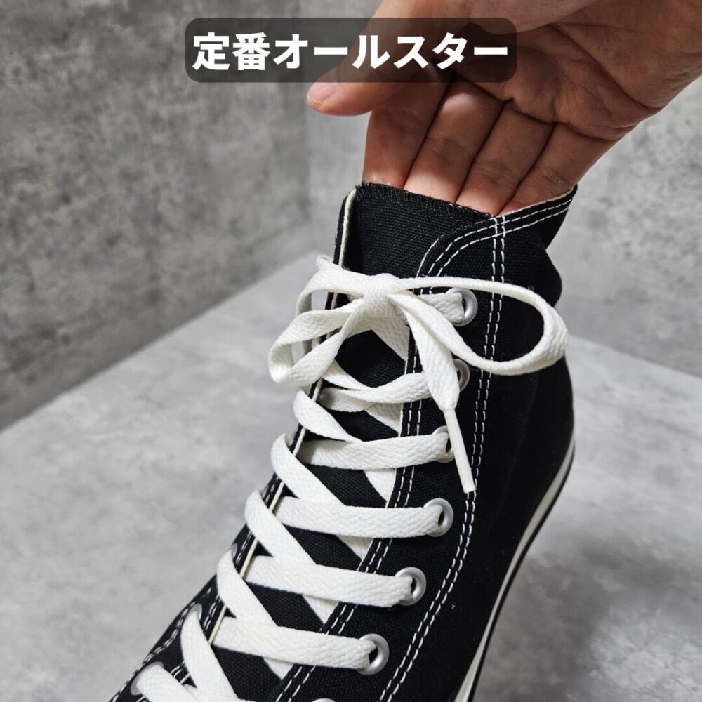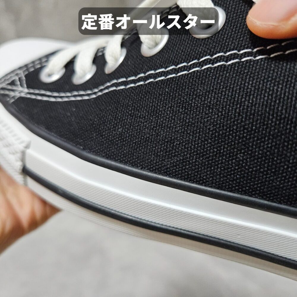 まず、定番オールスターは価格の手頃さと入手のしやすさが最大の魅力で、横幅の圧迫感がやや少ないという良さがあります。