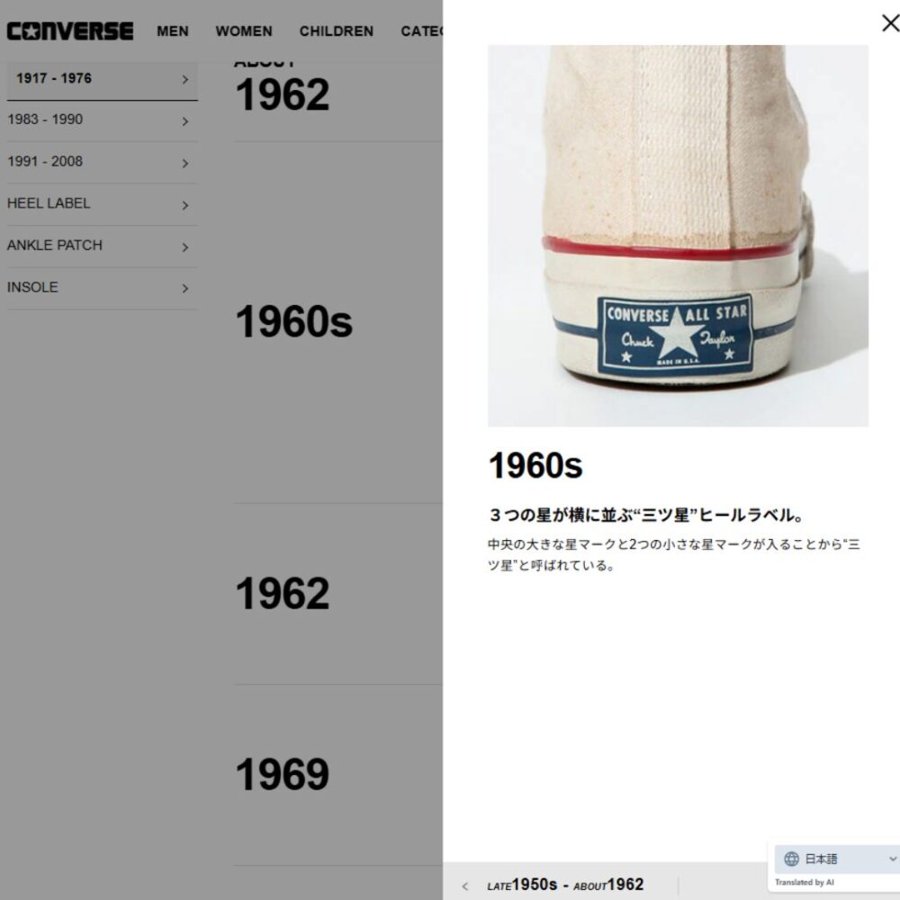 なお、日本のコンバースジャパンでも、このオフホワイトのソールに目をつけたのか、「U.S. ORIGINATOR(オリジネーター)」という黄ばみがかったソールのシリーズを展開しました。こちらは国内でも好評でしたが、現在生産は終了されています。