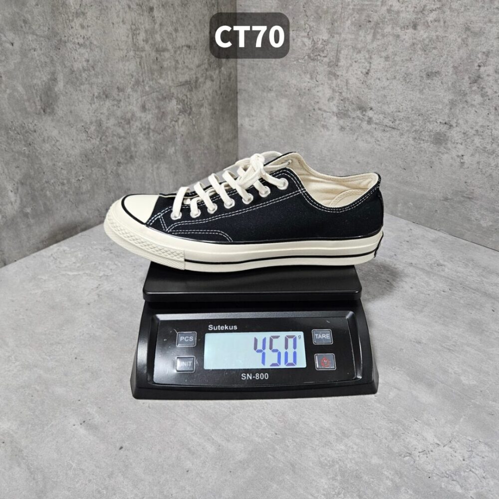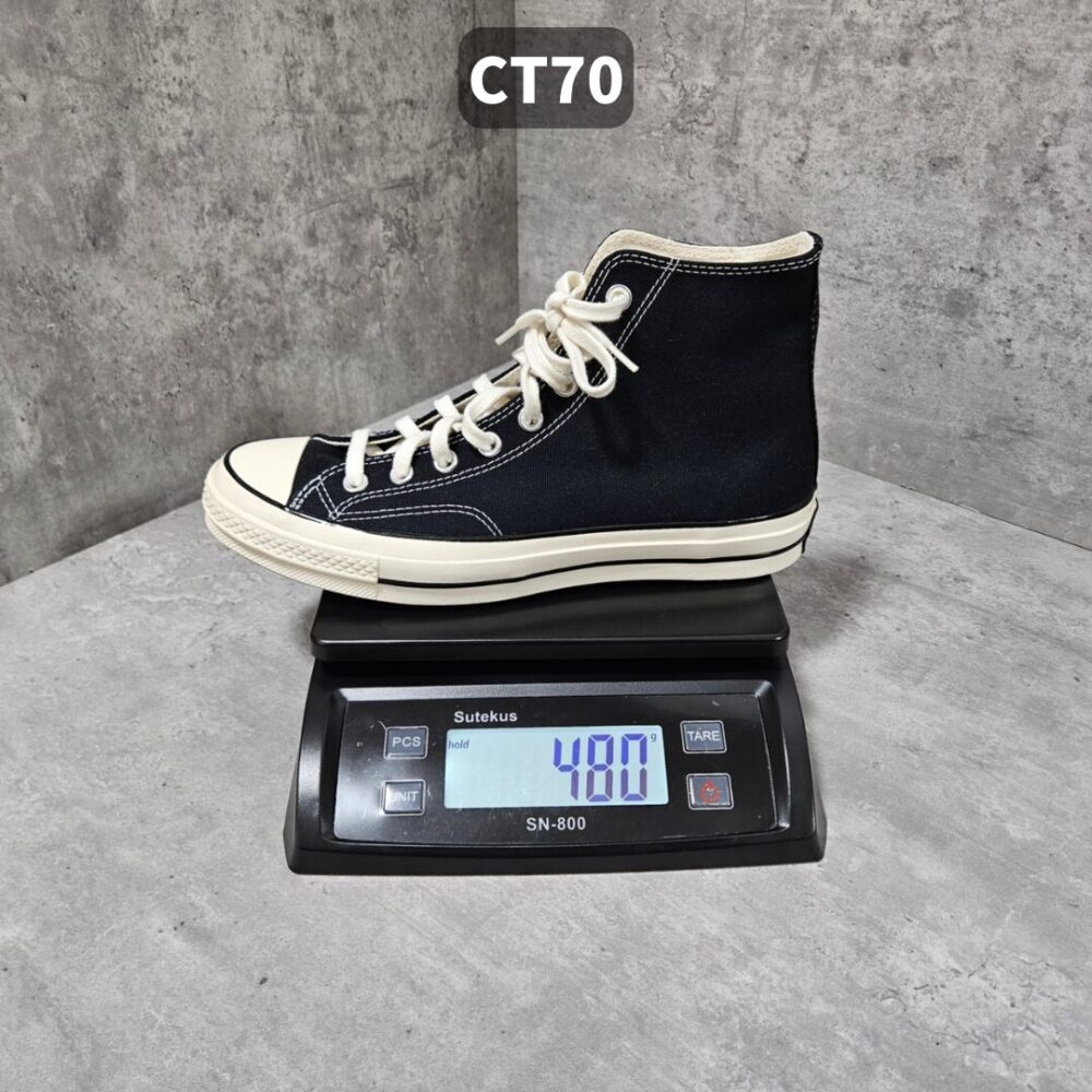 実際に計測してみると、定番オールスターの方がCT70よりも軽量でした。