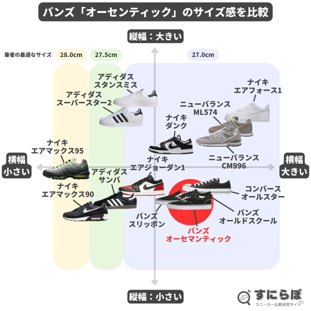 - オーセンティックとバンズオールドスクールのサイズ感を比較