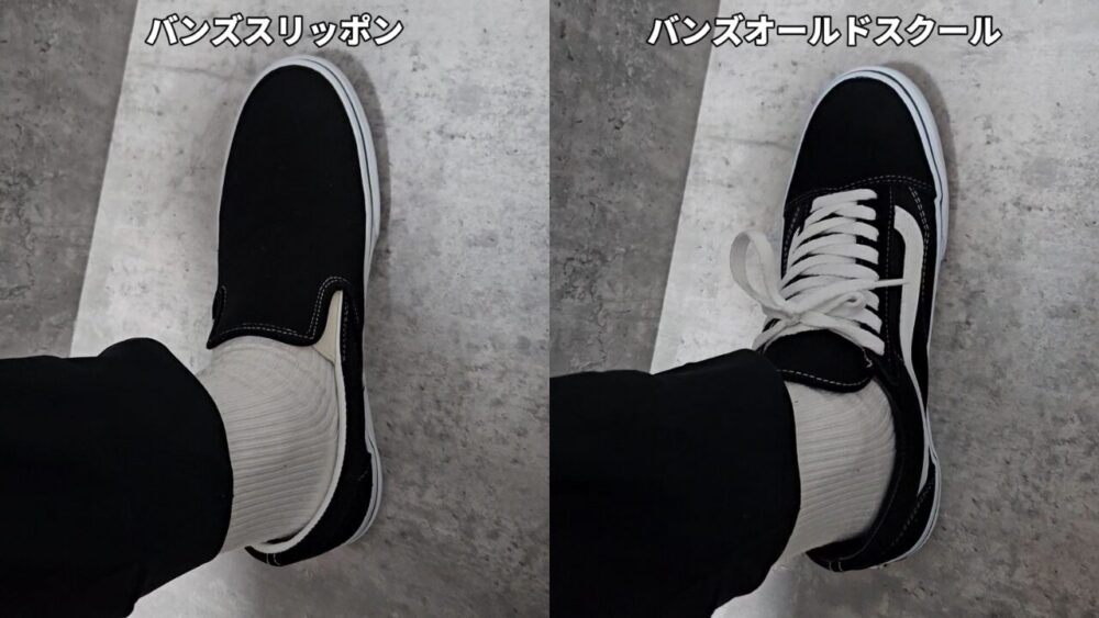 バンズのスリッポンとオールドスクールは、サイズ感はほぼ同じでした。