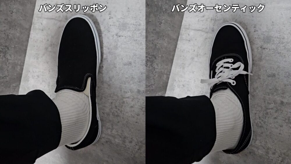 バンズスリッポンとバンズオーセンティックのサイズ感を比較