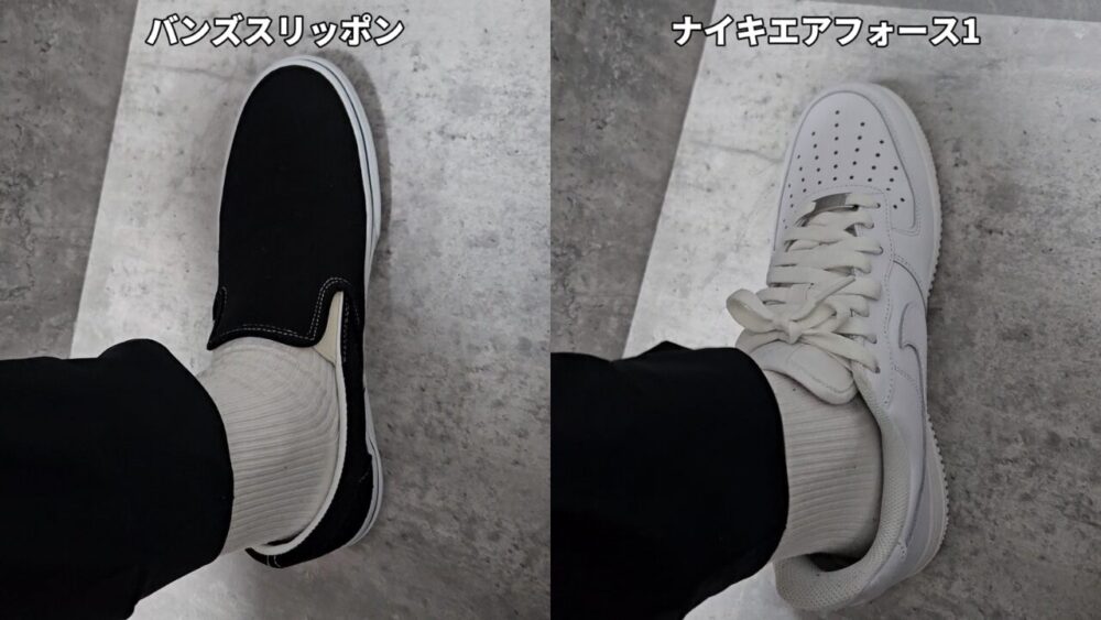 バンズスリッポンとナイキエアフォース1のサイズ感を比較