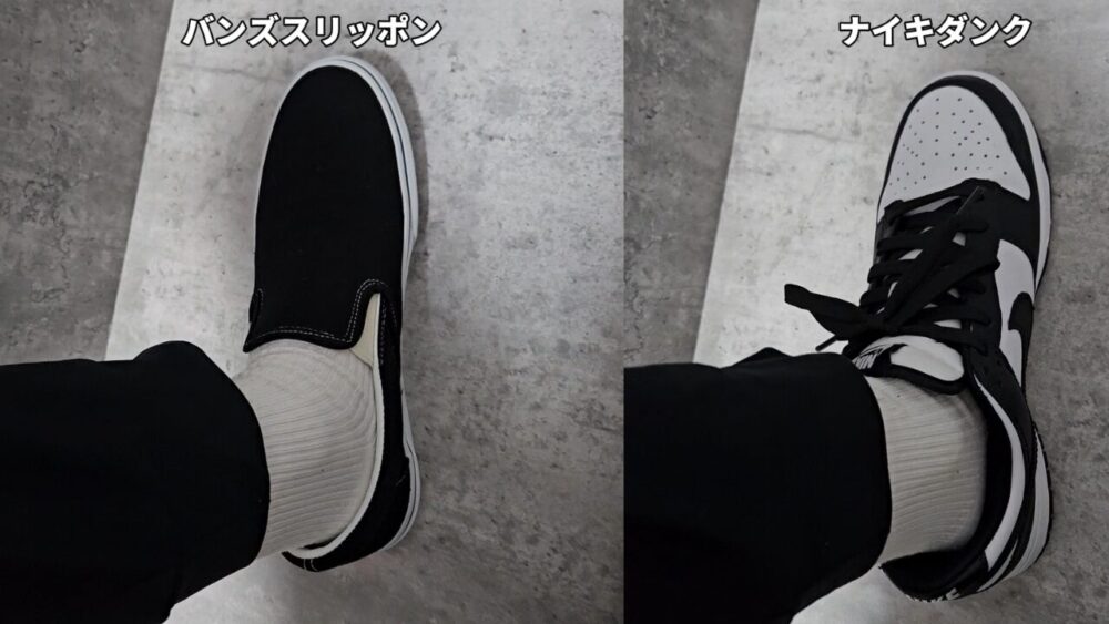 - バンズスリッポンとナイキダンクのサイズ感を比較
