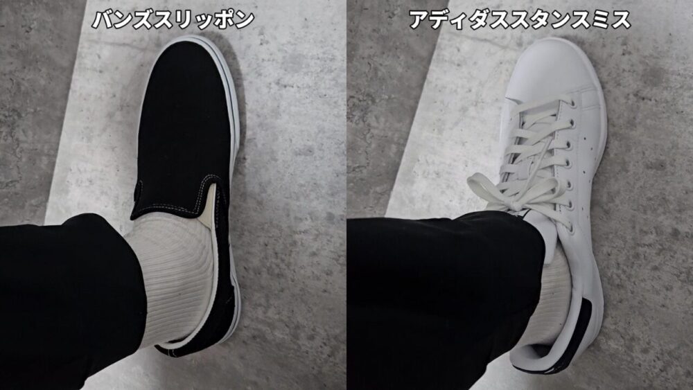 - バンズスリッポンとアディダススタンスミスのサイズ感を比較