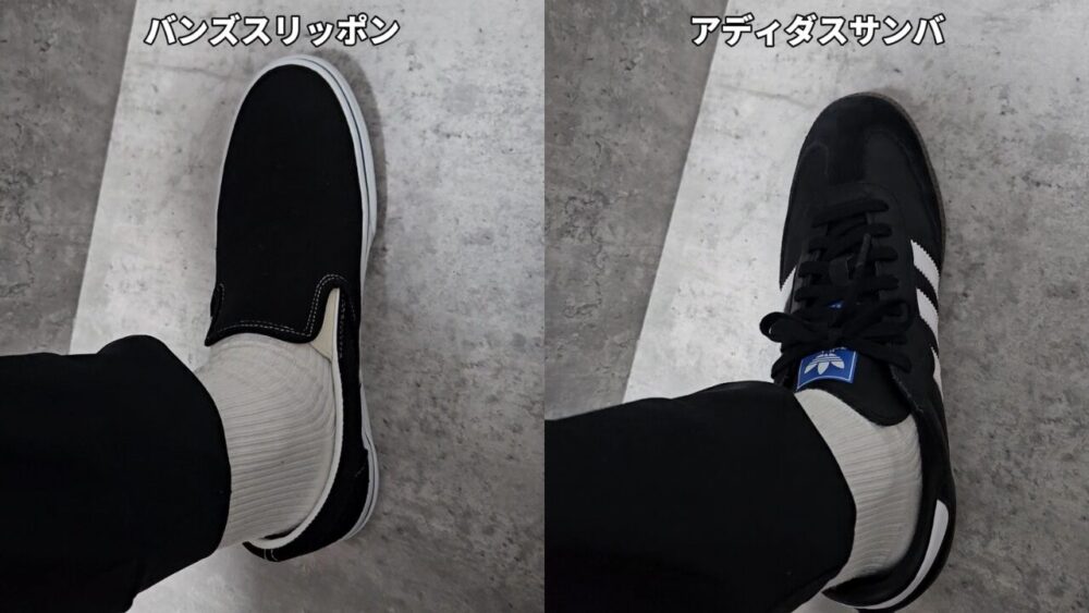 - バンズスリッポンとアディダスサンバのサイズ感を比較
