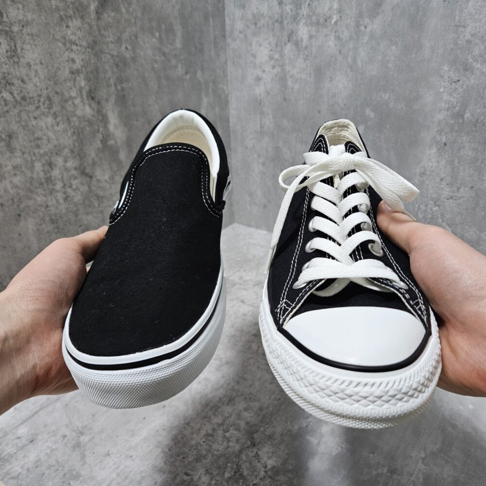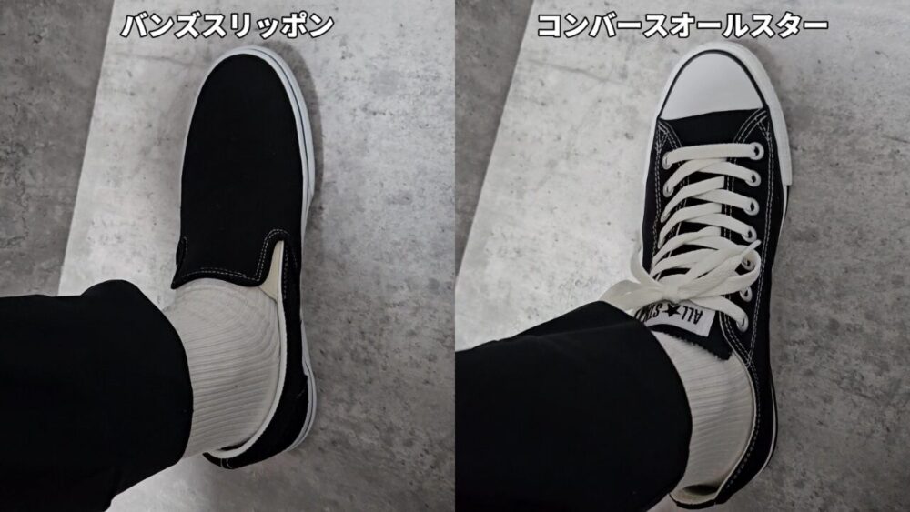 - バンズスリッポンとコンバースオールスターのサイズ感を比較
