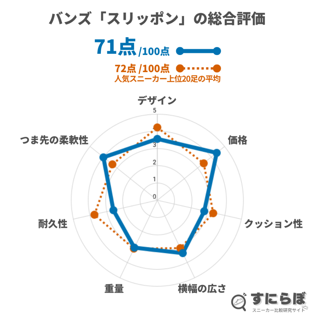 バンズのスリッポンのデザイン総合評価は3.6点です。