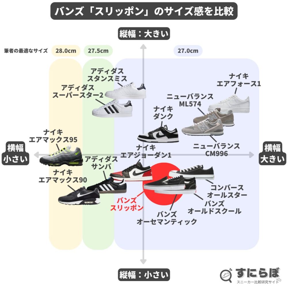 バンズのスリッポンのサイズ感を、他の人気スニーカーと比べてみました。