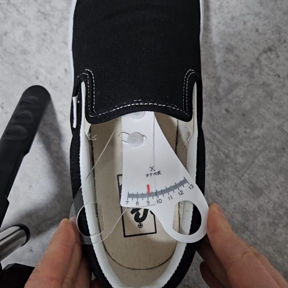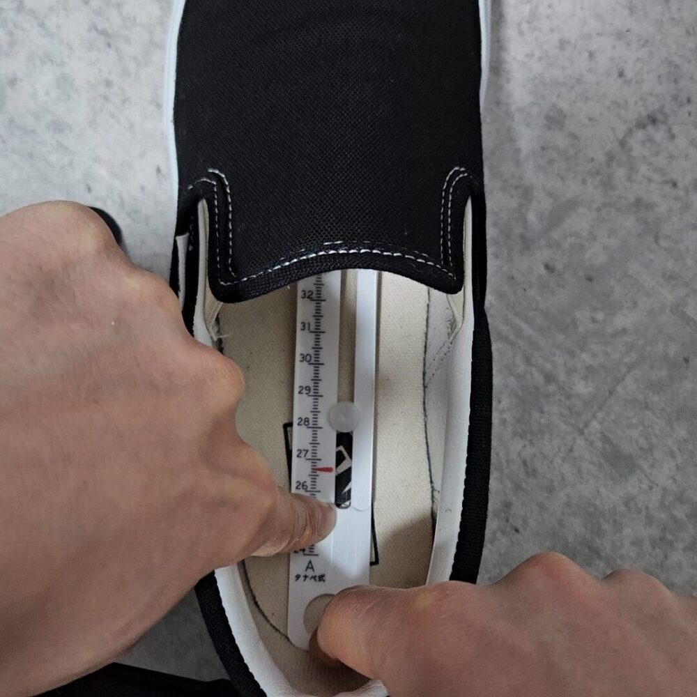 バンズのスリッポンについて、27.0cmの内寸(縦・横)を実際に測定しました。