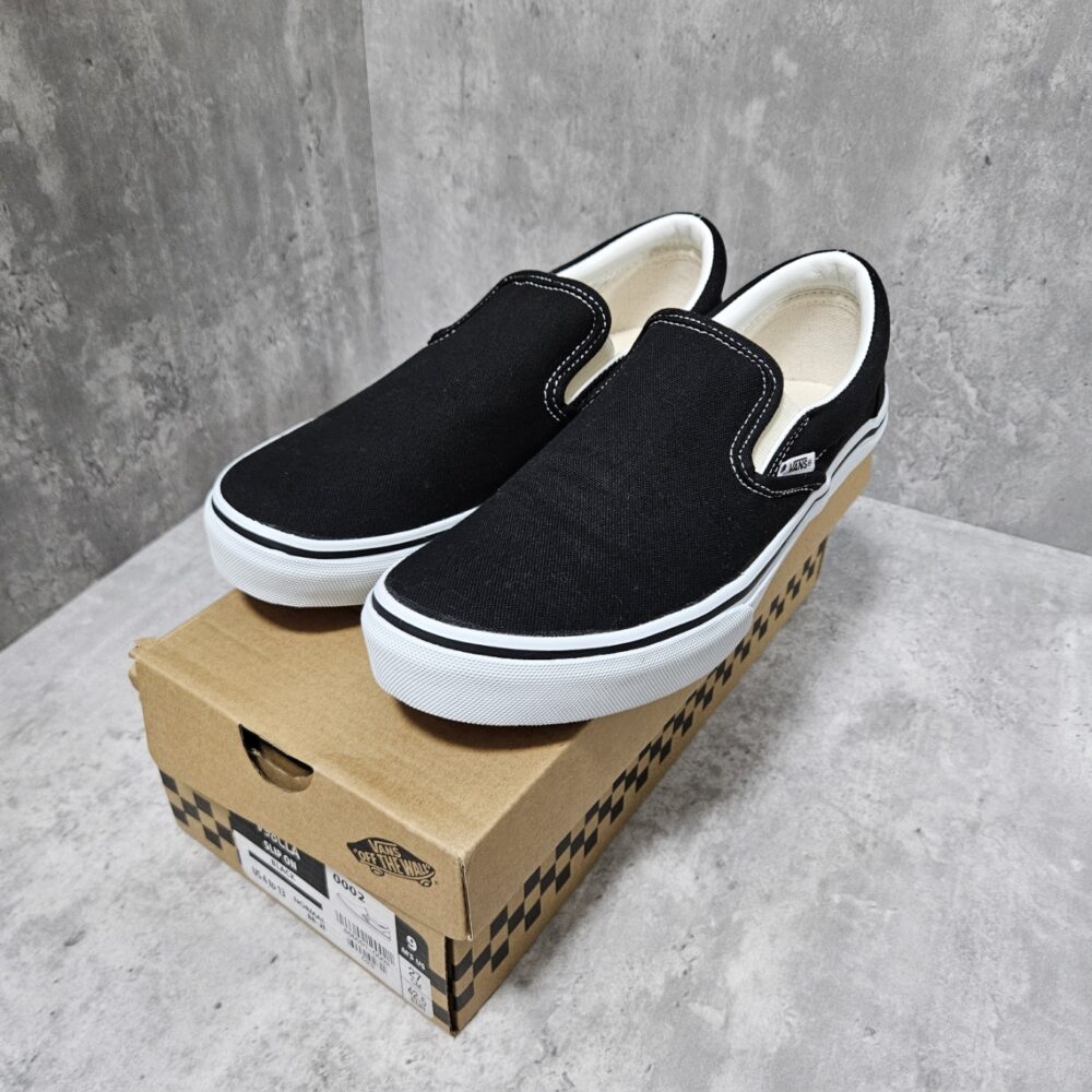 VANSのスリッポンのサイズ感は縦横ともに標準的ですが、縦は少し短め、横は少し広め寄りです。