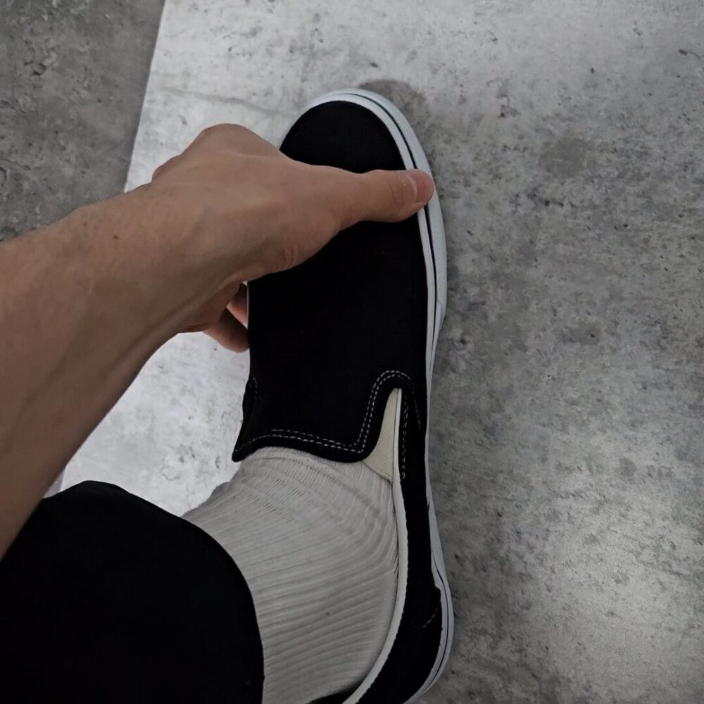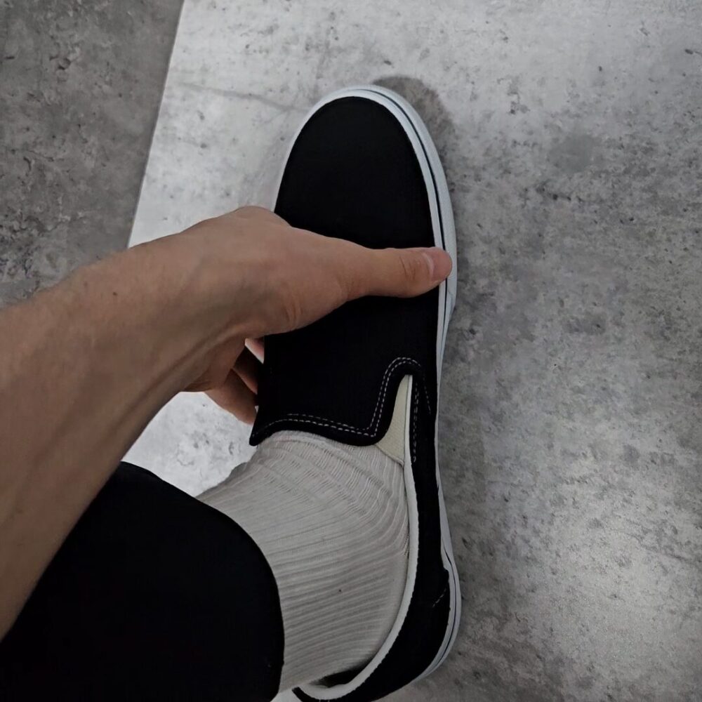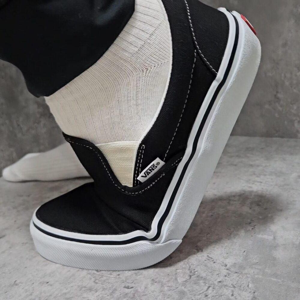 ただ、エアフォース1を履いて横幅がキツく感じる場合は、バンズのスリッポンはさらにキツく感じる可能性があるので、0.5cm上げた方が良いかもしれません。