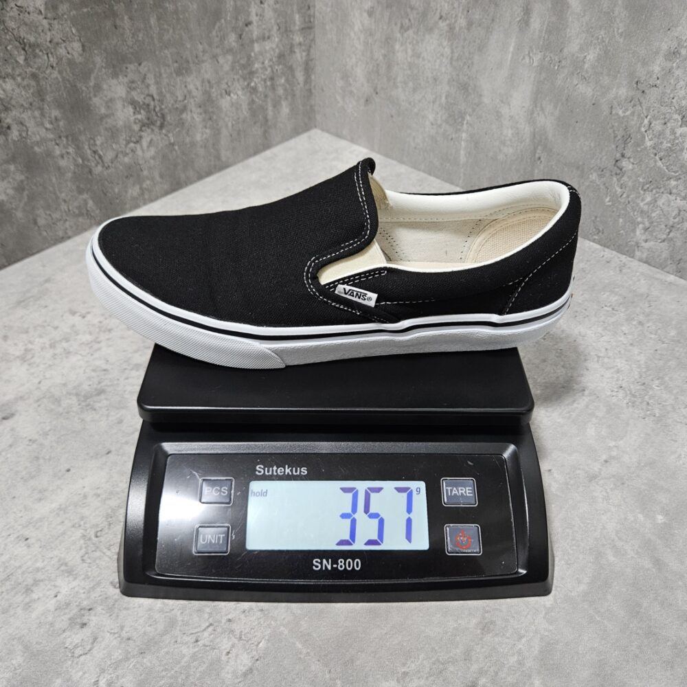 バンズのスリッポンの重さは、27.0cmで片足357gです。